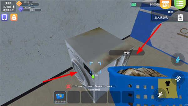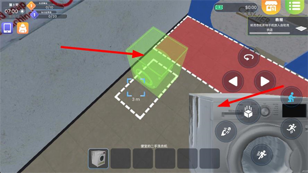 1、先找到便宜的二手洗衣機,點擊對應按鈕將其放置到指定區域,完成設備的初始布置,為后續洗衣做準備。
