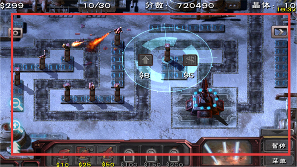 4、戰斗界面中可在地圖空位建造防御塔,不同塔對應不同花費,防御塔會自動攻擊蟲族單位,擊敗敵人可獲得金幣用于強化塔防。