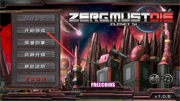 1、主界面找到開始游戲按鈕并點擊,即可進入游戲選擇環節,這是開啟游戲的第一步,后續將進入模式與難度設置界面。
