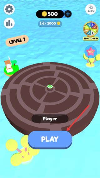 1、界面顯示【LEVEL 1】,底部有藍色【PLAY】按鈕,點擊該按鈕即可進入關卡,同時可看到當前擁有的金幣數量,準備開啟該關卡的游玩。