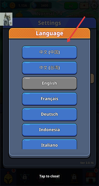 4、在語言選擇界面中選擇對應的語言選項,完成后即可將游戲界面的語言切換為所選語言,方便后續操作。