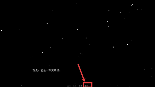 2、進入劇情界面后,屏幕會顯示文字內容,底部有返回、快進、自動、菜單等功能按鈕,點擊【菜單】按鈕可打開功能菜單。