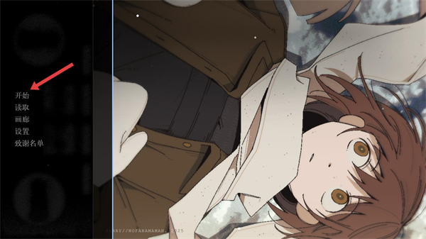 1、界面左側顯示多個功能選項,包括開始、讀取、畫廊等,點擊【開始】選項即可進入游戲流程。