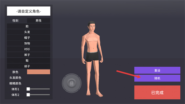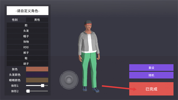 2、完成角色外觀的調整或隨機生成后,確認形象符合需求,點擊【已完成】按鈕就能結束自定義流程,進入游戲的實際游玩場景。