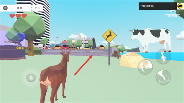3、進入游戲場景后,可操控鹿在包含建筑、動物的區域內移動、互動,跟隨指引操作或自由探索,推進游戲進度、解鎖更多內容與玩法。