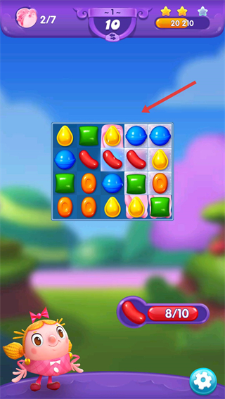 1、觀察消除界面中的糖果元素,找到目標類型的糖果,通過操作將其消除,積累對應的數量。