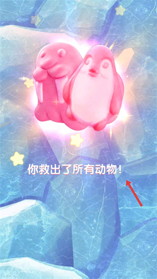 2、完成關卡要求的操作后,會看到解救成功的提示,界面呈現出獲救的動物形象,同時顯示對應的通關文案。