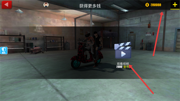 1、進入獲得更多錢界面可通過點擊觀看視頻免費獲取游戲貨幣,也能點擊右上角加號按鈕直接購買貨幣。