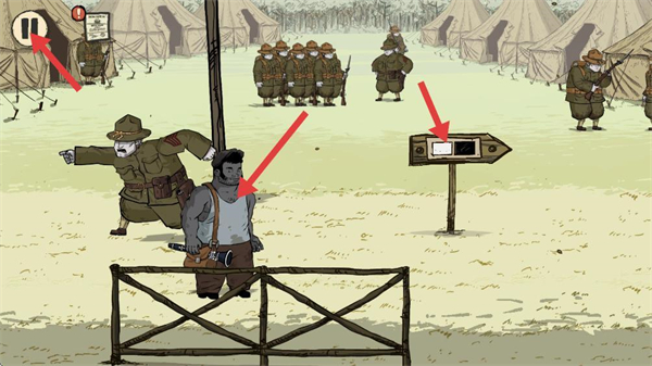 2、進入場景后,可通過左側按鈕暫停游戲,同時與場景內的角色互動,還能查看指示牌獲取任務信息。
