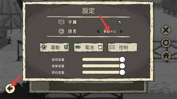 4、在設定界面將語言切換為繁體中文,同時可調整音量等選項,更適配自身的游玩習慣。