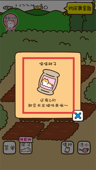 4、完成播種和澆水后,等待一段時間,喵喵種子經過培育,會在對應時間后長出貓咪,獲取新的貓咪。