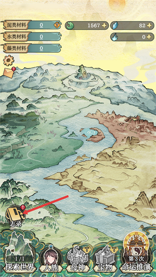 1、界面左下角有【志錄】按鈕,點擊后可展開分類菜單,包含材料、精華等選項,這些分類是查看、管理各類資源與功能的入口,需按需點擊使用。