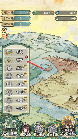 2、展開志錄菜單后,選擇【精華】選項可進入精華界面,精華是提升人族戰力的核心道具,后續可在此界面查看各類精華的效果與解鎖條件。