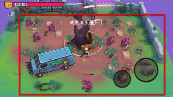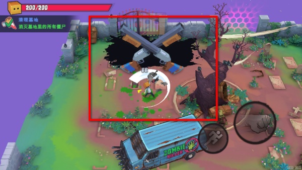 1、進入場景后點擊攻擊按鈕對僵尸發起攻擊,持續攻擊場景內的僵尸,直到完成消滅所有僵尸的目標,就能推進當前階段的進度。