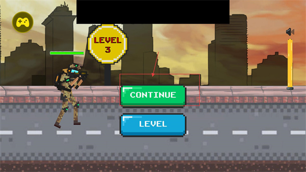 1、進入主界面綠色按鈕可繼續推進流程,藍色按鈕用于關卡選擇,玩家可點擊對應按鈕可進入游戲或切換關卡。