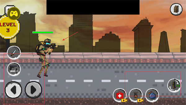 3、戰斗界面左側是武器切換按鈕,右側有急救包、投擲物等道具欄,移動按鈕用于控制角色走位,需結合武器與道具的搭配。
