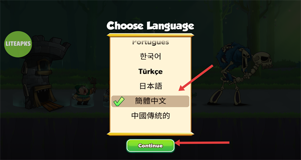 4、選定目標語言后,點擊繼續按鈕確認設置,返回游戲界面,即可使用調整后的語言進行游戲。