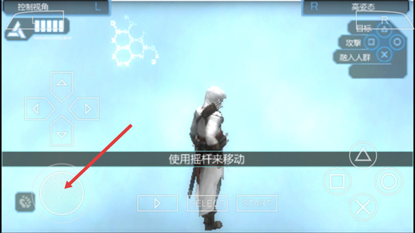 2、進入游戲后,通過搖桿控制角色移動,界面會顯示操作提示,同時可查看角色狀態與功能按鈕。
