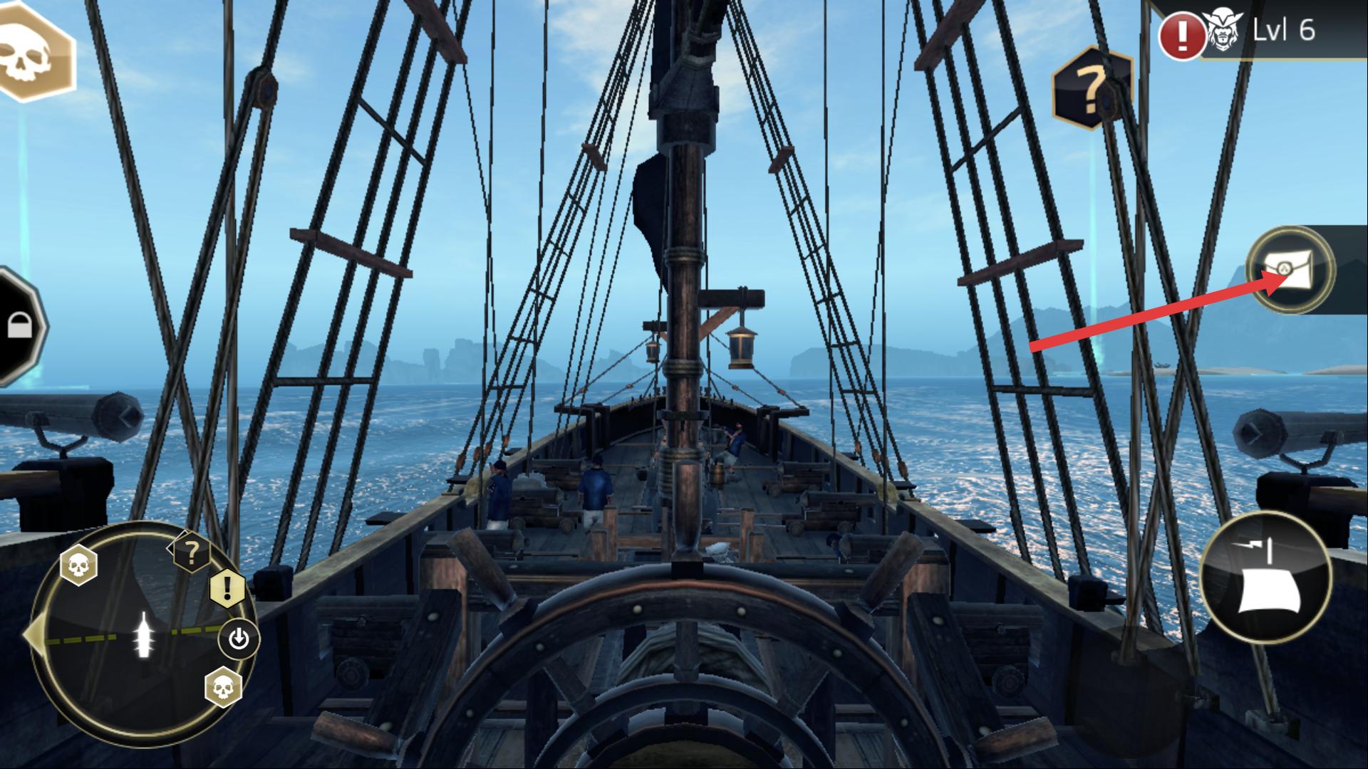3、進入航海場景后,可通過右側功能按鈕查看任務,同時操控船只航行,探索海域區域。