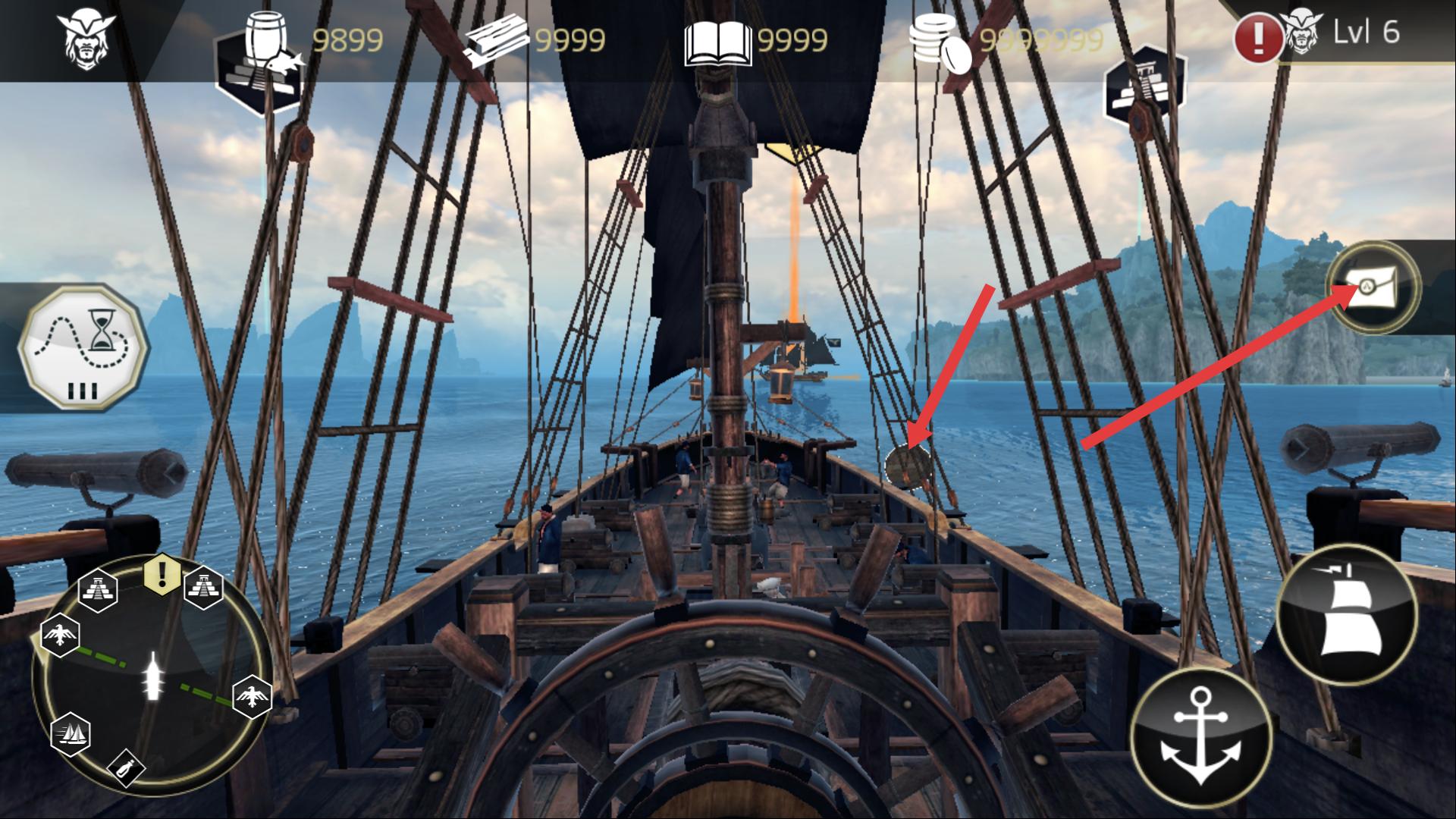 4、航行中可通過界面功能調整船帆、拋錨,同時利用資源強化船只,應對海域中的敵方目標。