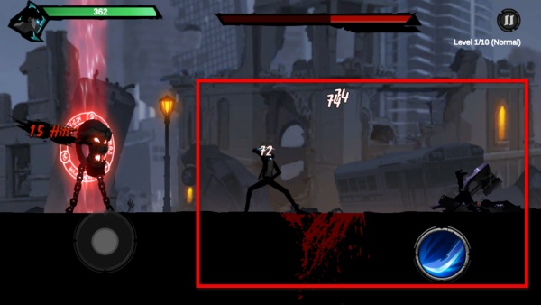 2、與敵人展開戰斗,攻擊敵人會顯示傷害數值,同時留意自身血量變化,戰斗中可使用右下角的技能按鈕釋放技能,增強輸出或獲取增益效果。
