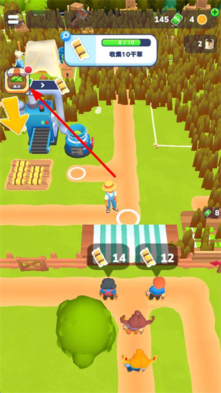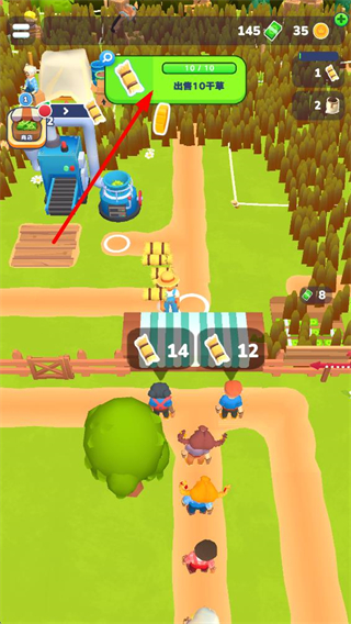 3、當收集干草進度達成10個目標后,執行出售10干草的操作,完成后獲取對應收益,提升牧場的經營收益水平。
