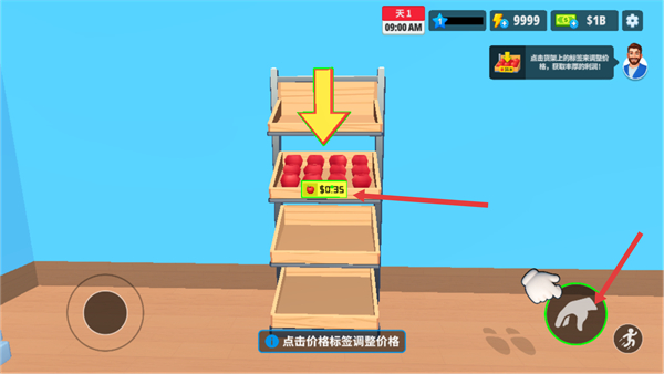 3、商品擺放到貨架后,找到貨架上的價格標簽,點擊該標簽可觸發價格調整功能,通過這個操作能設置商品售價。