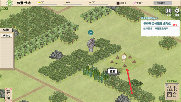 4、居民帳篷進入建設狀態后,點擊結束回合等待建造完畢,期間可查看建設進度,完成后將滿足新手引導任務要求,同時解鎖新的功能或任務,助力初期基地的發展。