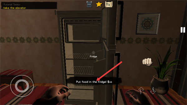 2、面對標注【Fridge】的冰箱,按提示執行將食物放入冰箱的操作,該操作會消耗10貨幣,完成后可推進當前環節的任務,繼續后續流程。