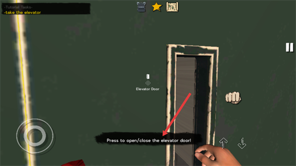 1、界面顯示教程任務為乘坐電梯,找到標注【Elevator Door】的電梯門,按提示點擊對應區域,即可完成電梯門的開啟或關閉操作,推進任務流程。