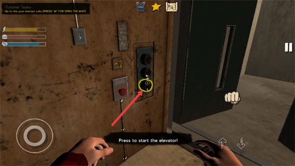 3、找到標注啟動電梯的按鈕,按提示點擊該按鈕,觸發電梯啟動的操作,完成這一步后,電梯將處于可使用狀態,助力后續前往網吧的行程推進。