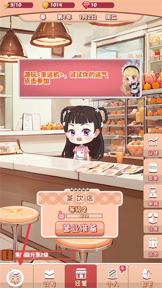 1、界面顯示茶飲店等級2,點擊左下角的商店,讓我們進入到商店里挑選所需的商品。