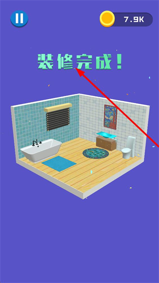 4、完成一系列操作后會顯示裝修完成的提示,房間會布置好浴缸馬桶等設施,此時房間裝修完畢,可準備后續的售賣等操作。