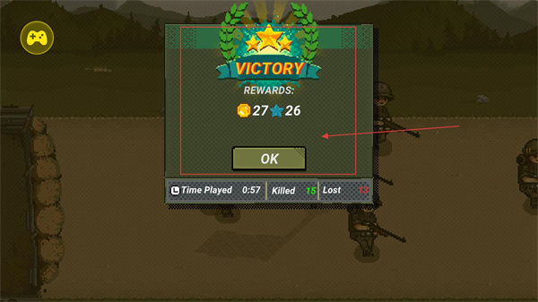 4、玩家在戰斗勝利后會彈出結算界面,點擊OK按鈕可領取獎勵并返回關卡選擇界面,繼續推進后續關卡。