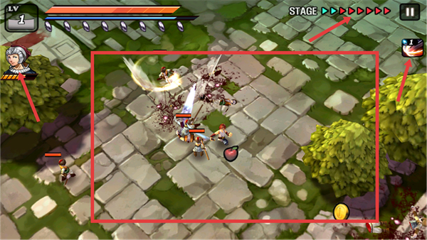 3、進入戰場后操控角色與敵人戰斗,通過點擊移動角色,還可以使用技能提高傷害,消滅敵人還會掉落裝備來充狀態。