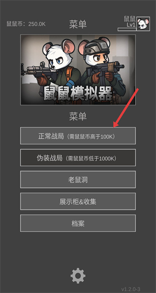 1、進入游戲主界面后,根據自身擁有的鼠鼠幣數量,選擇對應的對局模式,點擊進入游戲對局,開啟相應的游戲進程。