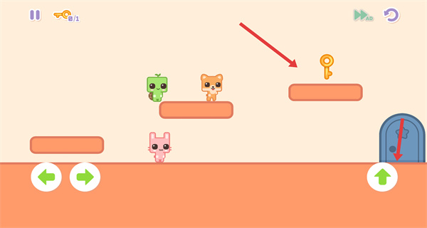 3、操控角色移動到鑰匙所在的區域,獲取關卡中的鑰匙,之后再引導角色移動到門的位置,準備完成關卡的通關條件。