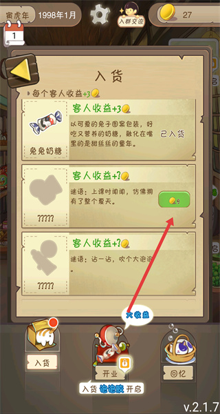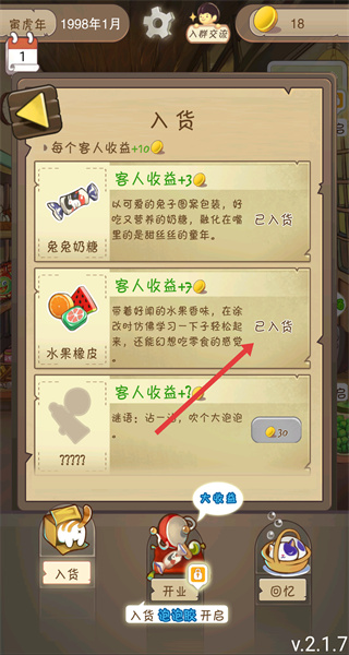 4、完成商品入貨后,可在入貨頁面看到該商品顯示已入貨的狀態,此時可準備進行后續的開業等游戲流程。
