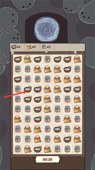 3、進入匹配界面后,需在限時內點擊相同樣式的食材圖標進行消除,界面頂部顯示當前各類食材的數量,按紅色指示找到對應圖標,及時操作提升消除效率。