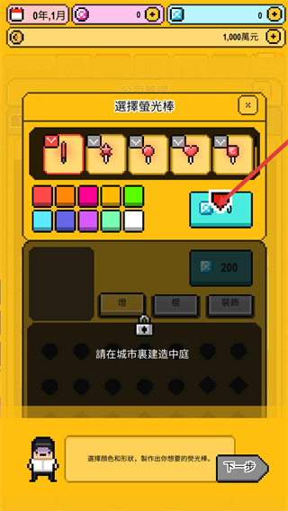4、進入選擇熒光棒界面,挑選喜歡的顏色樣式,消耗對應貨幣確認選擇,之后點擊下一步完成配置。