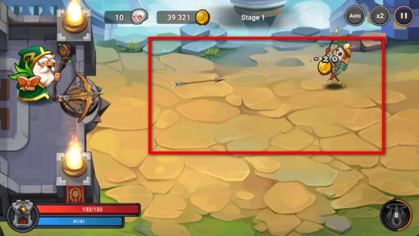 1、操控弓箭,對準出現的敵人發射箭矢進行攻擊,持續命中敵人將其擊敗,同時推進當前關卡的進度條。
