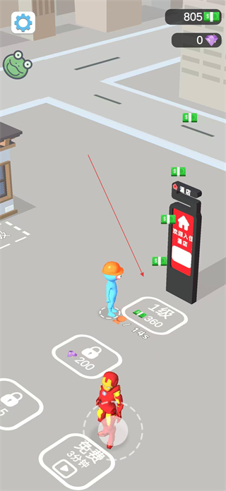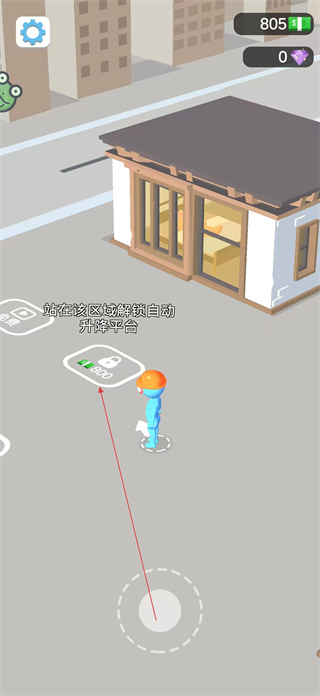 3、控制角色站在指定區域觸發自動升降平臺,賺取更多的資金,推進酒店的經營流程。
