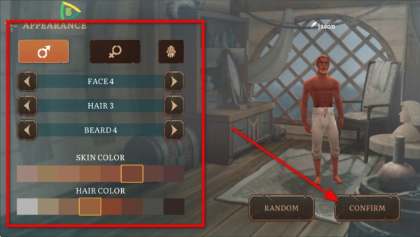 1、選擇角色的性別臉型發型胡須,再挑選膚色發色,調整完后點擊確認按鈕,就能確定角色的外觀形象。