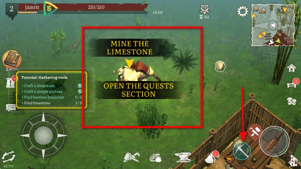 4、使用工具開采石灰石,完成任務里的采集要求,逐步推進任務進度,提升角色等級獲取經驗。