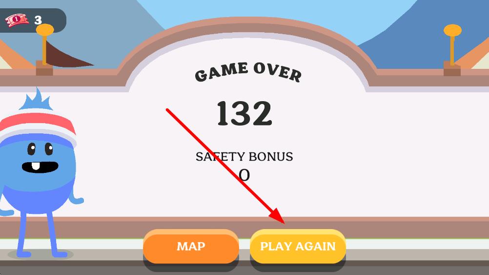 4、游戲結束后界面顯示得分及PLAYAGAIN按鈕,點擊該按鈕可重新開始游戲,再次挑戰以嘗試獲取更高的游戲分數。