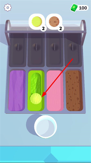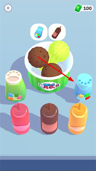3、原料添加后進入裝飾環節,查看周圍的裝飾配料,選擇對應的配料添加到冰淇淋中,完成冰淇淋的裝飾步驟,豐富成品樣式。