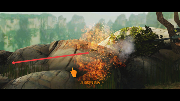 3、界面提示滑動旋轉鏡頭,需按照指引滑動調整鏡頭視角,觀察爆炸區域及周邊環境,確保視野覆蓋目標區域,為后續操作提供清晰觀察條件。