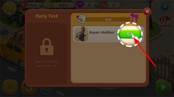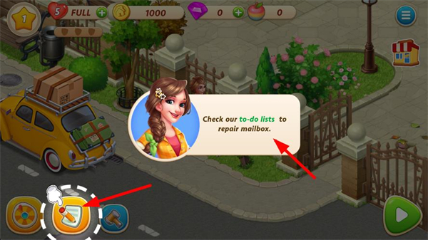 1、在帶有車輛、信箱等元素的家園場景,角色提示查看待辦清單以修復信箱,點擊界面上的待辦清單按鈕即可查看任務。