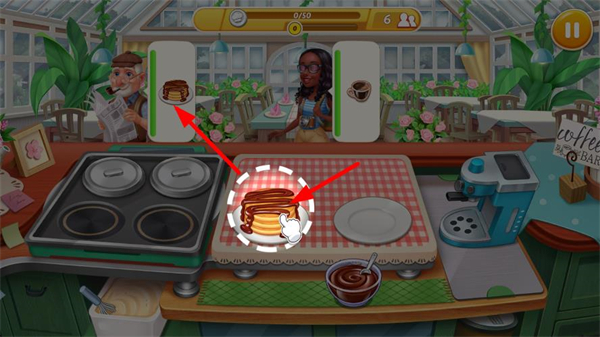 4、切換到廚房場景后,看到桌上的食物,根據提示點擊該食物,可將其對應到上方的需求欄,完成相關的物品交付任務。