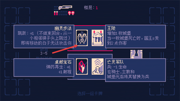 4、解鎖卡牌選擇界面,有幽靈步法、王陵等卡牌選項,幽靈步法可增加跳躍次數且不結束回合,提升移動靈活性與生存能力,助力后續戰斗。